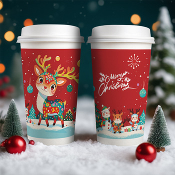 Tazas de papel de café desechables de una sola capa personalizables con diseño de Reno de Navidad Feliz Navidad 8oz/12oz/16oz