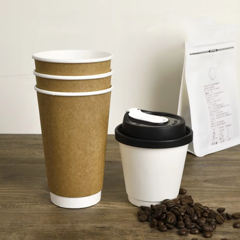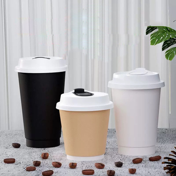Customized logo 8/10/16 ounce disposable coffee paper cup with lid kraft paper double wall hot drink paper cup