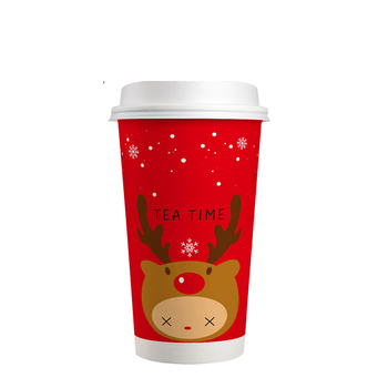 ถ้วยกาแฟกระดาษแบบใช้แล้วทิ้งขนาด8ออนซ์/12ออนซ์/16ออนซ์พร้อมรูปเรนเดียร์คริสต์มาส